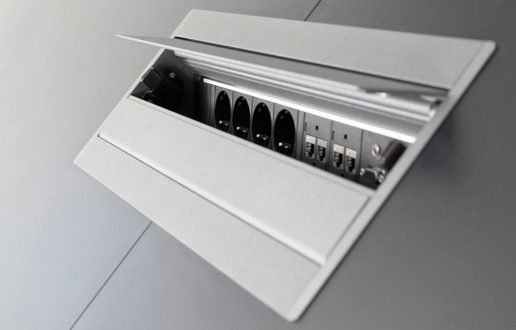I bordsskivorna finns möjlighet till att bland annat integrera el- och datauttag.