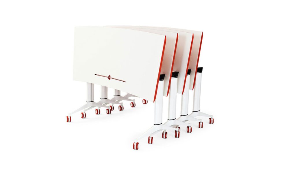 Fällbordet har flera tillval; valfri RAL-kulör på stativet, valfri höjd över 600 mm, hjulen kan fås i flera färger.
