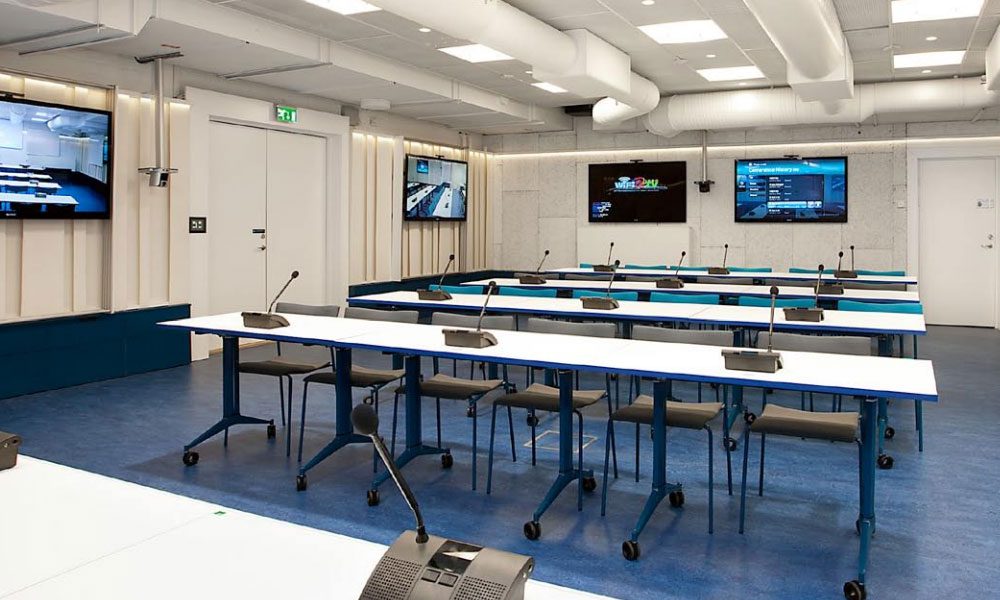 Komplettera fällbordet med bekväma och stapelbara konferensstolar.