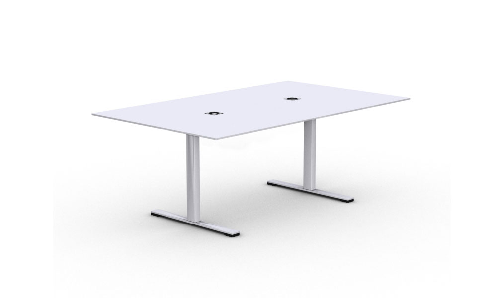 Konferensbordet finns med olika stativ, fast T-stativ eller justerbart T-stativ.