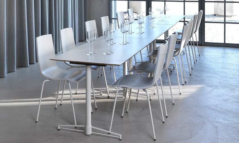 Borden går att få med dubbla benpar eller med pelarstativ.