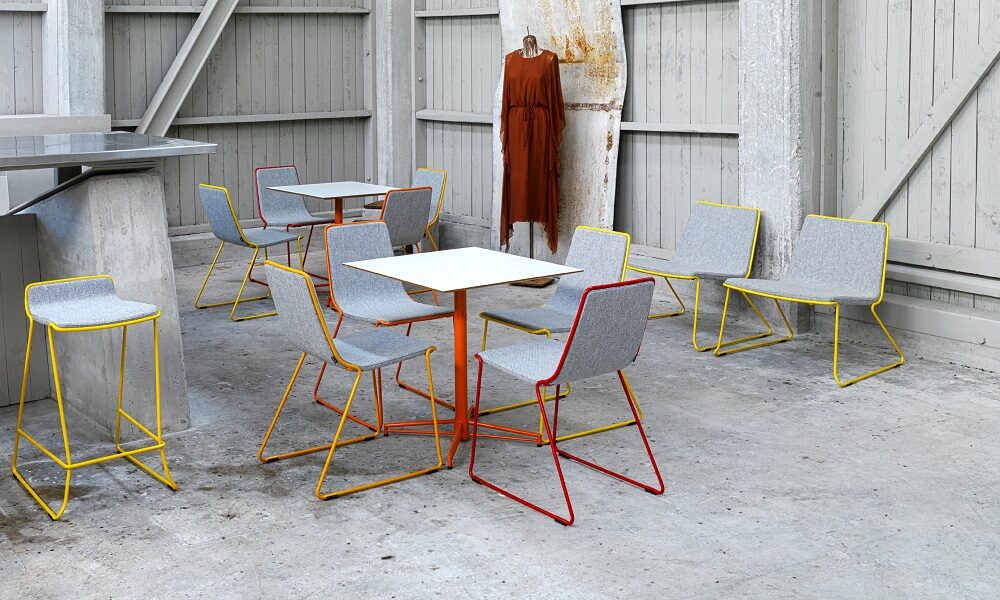 Borden går att få med dubbla benpar eller med pelarstativ.