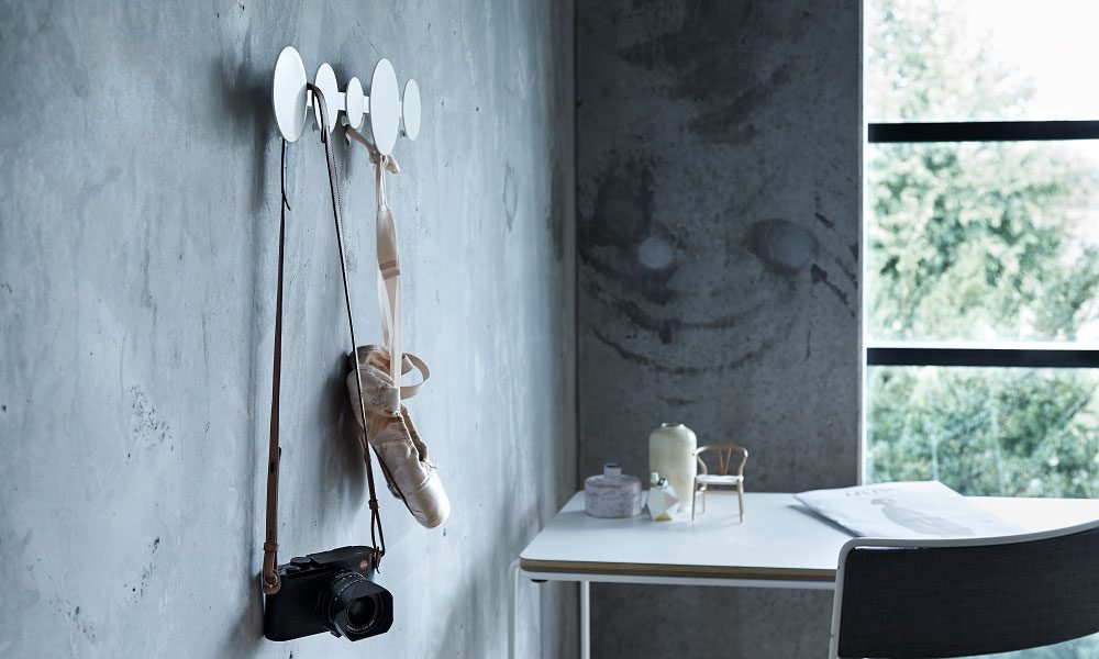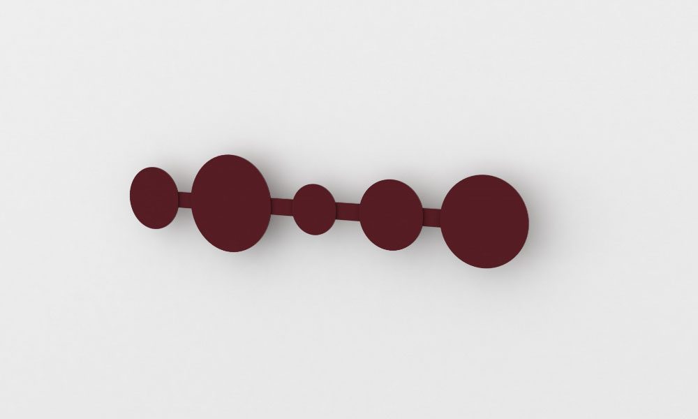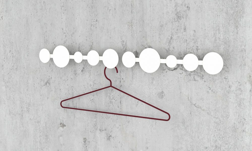 Bakom varje cirkel finns en krok för att kunna hänga ifrån sig jackor, väskor och övriga tillhörigheter.