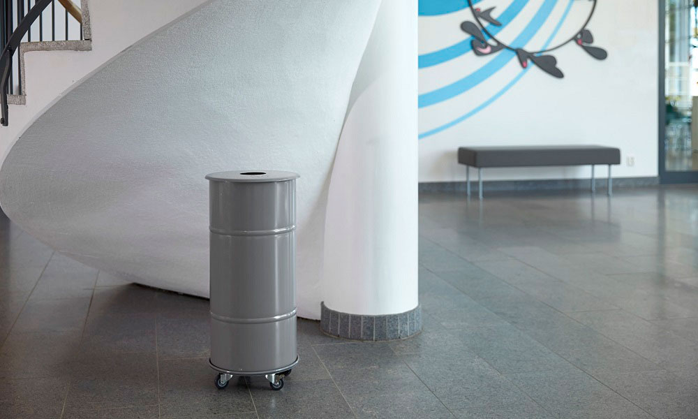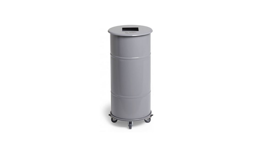 Papperskorgen finns både med och utan hjul där minst ett hjul är bromsat.