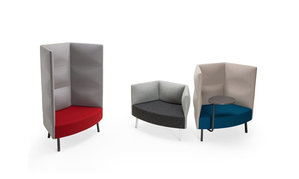 Fåtöljen passar bra i öppna miljöer som kontorslandskap och lounger då ryggen är hög och bidrar till att skapa en behaglig ljudnivå.