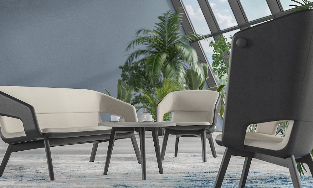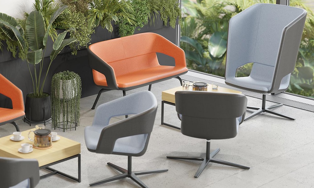Fåtäljen finns i olika storlekar och med höga eller låga ryggar, vilket gör det möjligt att enkelt gå från enskilda uppgifter som kräver koncentration till teammöten eller samtal med kollegor medan du njuter av en kopp kaffe.