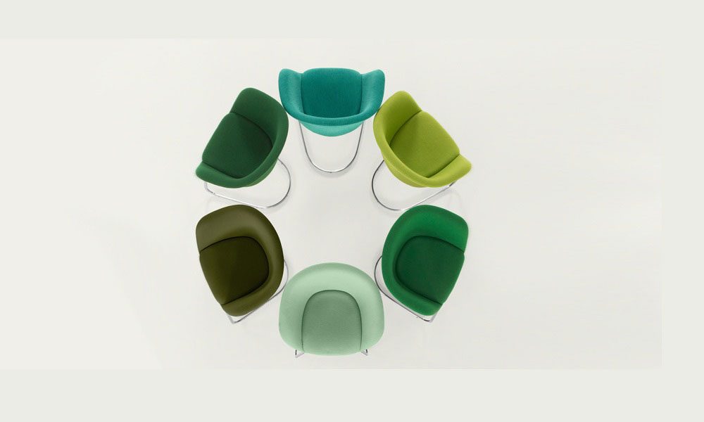 Som en mjuk, omslutande blomma, är stolens skepnad suggestiv och samtida.