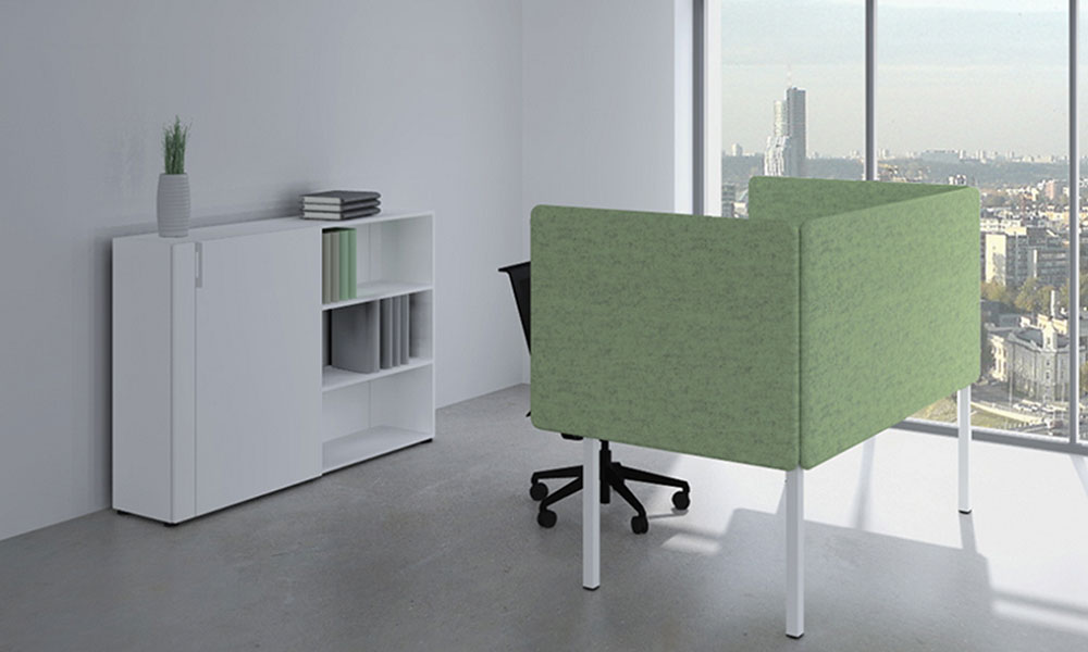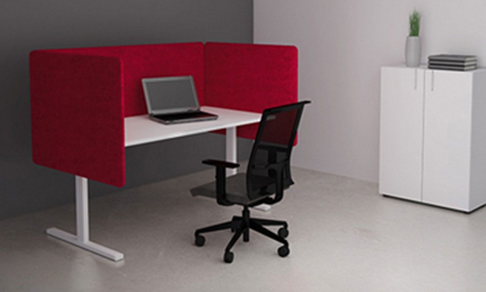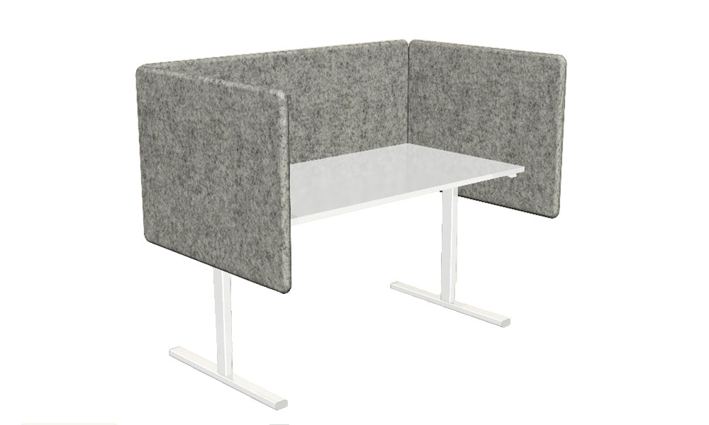 Calm 760 bordsskärm finns både som enkel skärm framför skrivbordet samt med sidoskärmar som tillval.