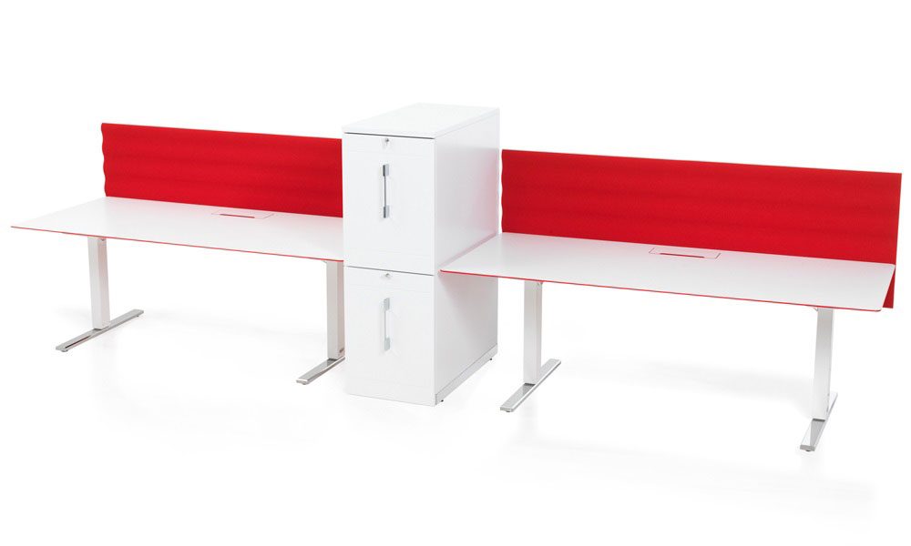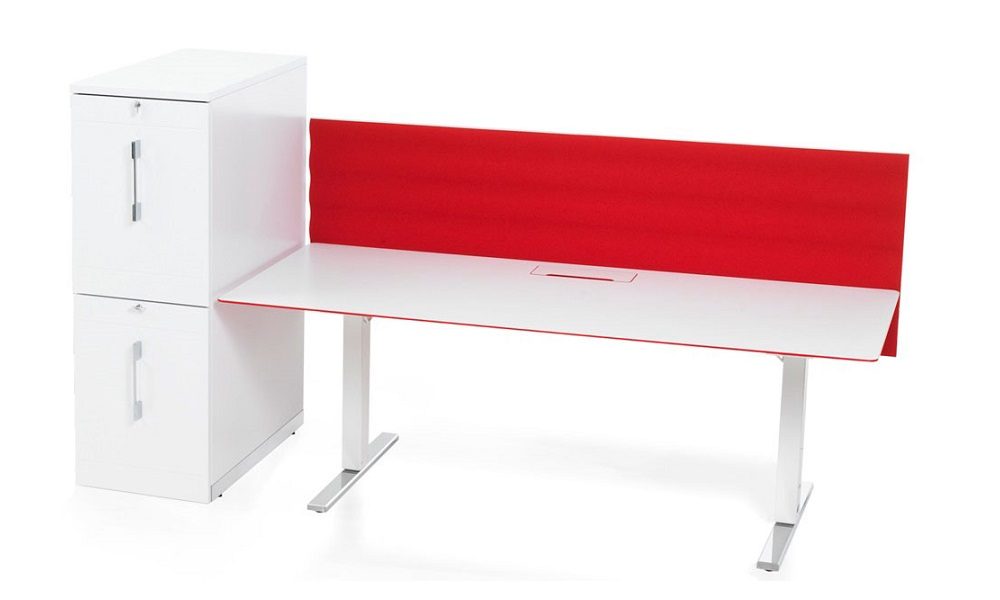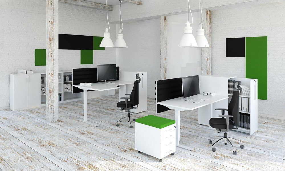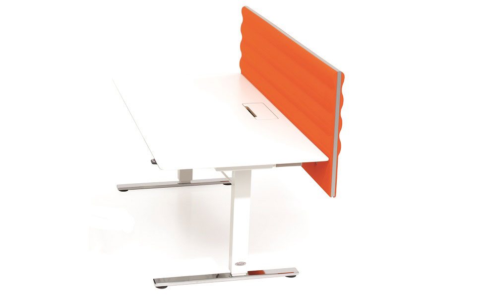 Skärmen dämpar ljud och buller på arbetsplatsen och passar absolut bäst i öppna kontorslandskap.