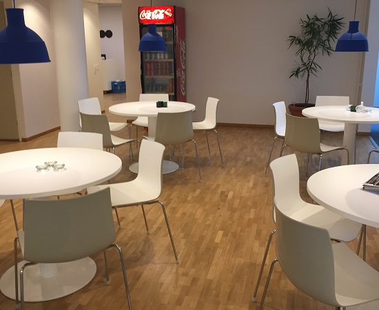 Vi fick bland annat leverera bord, stolar, lampor till deras lunchrum.