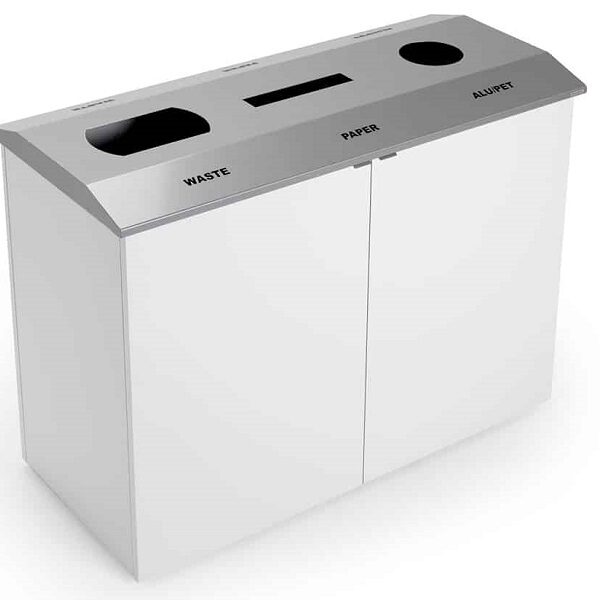Vi har ett stort sortiment av källsortering och papperskorgar till kontoret, entrén och matsalen.